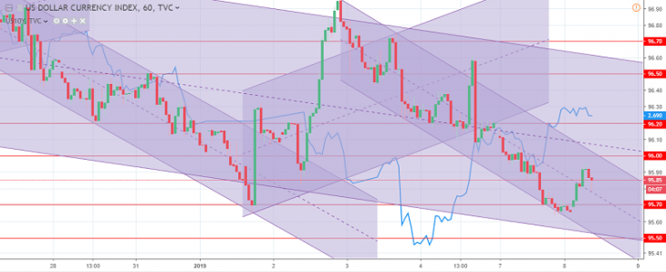 The US Monday session closed lower against a basket of competitors. The reason for the decline in the dollar was the softening of the Fed policy and the growth of optimism in the stock markets due to the trade negotiations. As a result, the US dollar index updated a low the year at the level of 95.70-60, indicating keeping the downtrend, which is limited to the support level of 95.70.