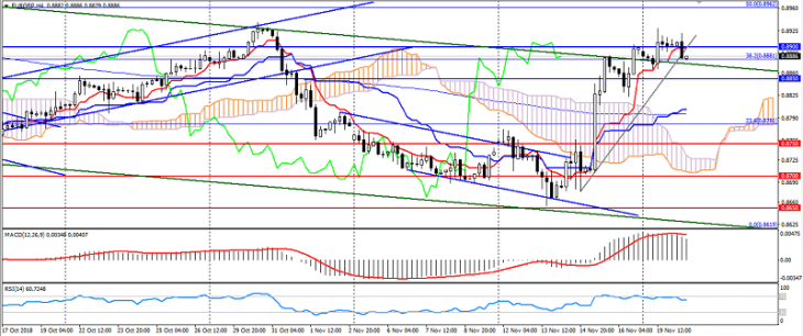 As a result, the British pound is showing moderate growth against its main competitors. The EUR/GBP pair slowed down and is trading near a significant resistance of 0.8900, from which it is possible to beat off the promotion of the Brexit deal and a technical reversal with a return to the downtrend.