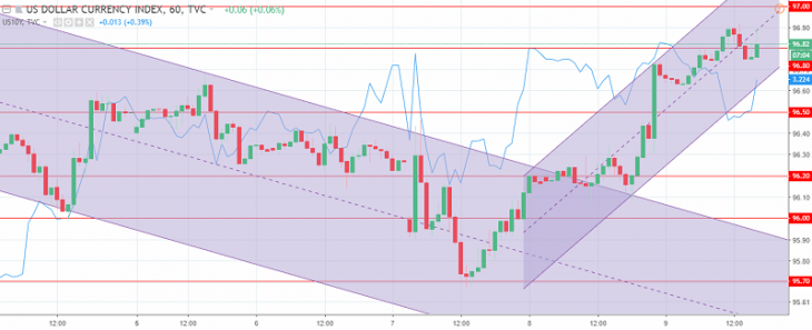 The US dollar index on this statistics resumed growth, which showed from the start of the day, but at the same time limited to overbought and formed resistance levels: 96.80 and 97.00.