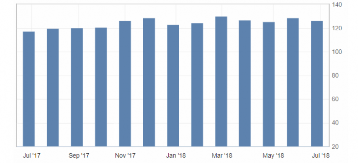 - US consumer confidence index from CB, actual 126.4, forecast 127.6.