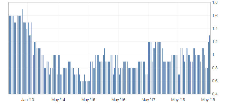 - Core Consumer Price Index (CPI) (y/y) (Apr), fact 1.3%, forecast 1.2%..