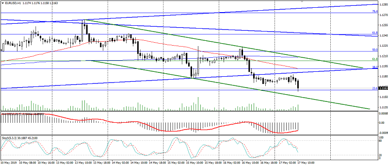 In addition to negative sentiment against the background of the closing of the trading week and flight from risk due to fears of aggravated the US – China trade confrontation, investors focused on political risks in the eurozone, which were exacerbated by the elections to the European Parliament. As a result, the EUR/USD pair accelerated the decline, despite the restrained positive data for the eurozone. Significant support: 1.1150 and 1.1130, resistance: 1.1180 and 1.1200.
