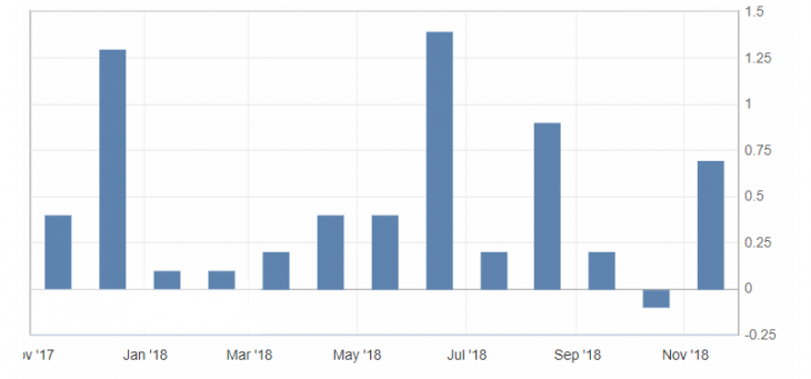 - Retail sales (m/m) (October), fact 0.8%, forecast 0.6%.