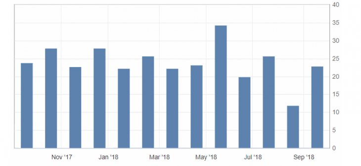 - Philadelphia Fed employment index (Sept), fact 17.6, previous value 14.3.