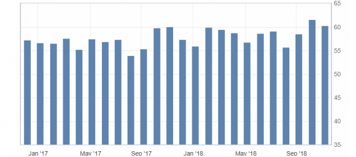 Statistics on business activity in the United States was very positive, especially against the background of the general weakness of the US dollar. The index of activity in the US in October remains near the annual highs, indicating a positive trend of activity and the economy as a whole.