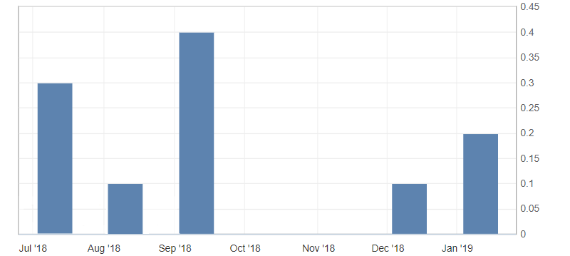 - Change in monthly GDP 3m/3m, fact 0.3%, forecast 0.3%.