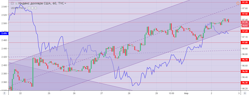 The US dollar index reacted very cautiously to published statistics. At the same time, the dynamics of the US dollar and the market as a whole remain very restrained. As a result, the US dollar index is limited to a restrained strengthening slightly above the opening of the day, confirming the safety of the upward trend and adjusting against continued growth. Resistance levels: 97.50 and 97.70, support: 97.20 and 97.00.