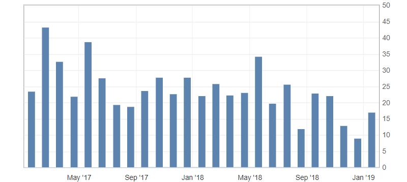 - Philadelphia Fed employment index (January), fact 9.6, previous value 19.1.