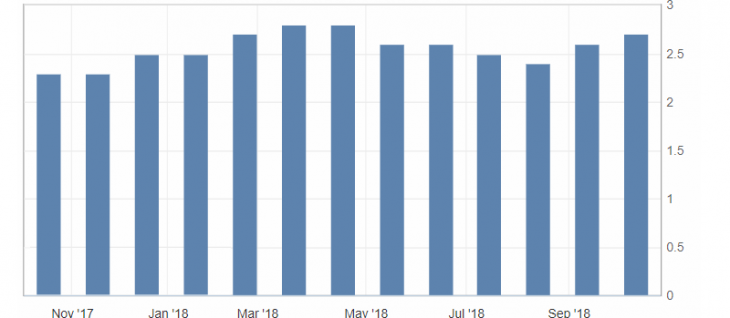 - Average earnings with bonuses (September), fact 3.0%, forecast 3.0%.