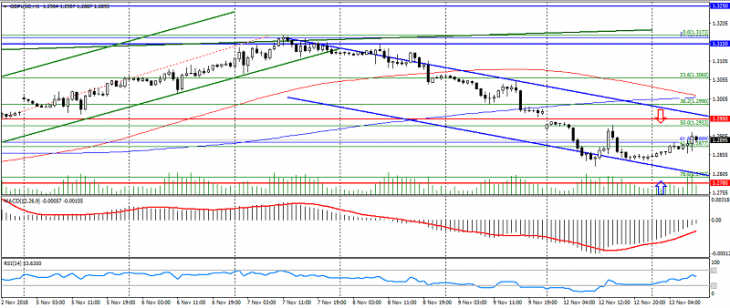 The GBP/USD pair maintains a dowtrend despite the correction after a decline and is limited to resistance levels: 1.2930-50 and 1.2980. Support is located at levels: 1.2830 and 1.2800.