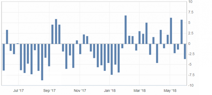 • Reserves of crude oil in the US is -3,620M, the forecast is -0,400M.