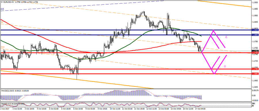 Technical analysis: The EUR/USD pair is currently trading near the 1.1750 level. It is at the moment, a significant level of support for the instrument. In case of further reduction and fixing it below the level of 1,1750, support should be considered in the area of 1,1700-1,1685.