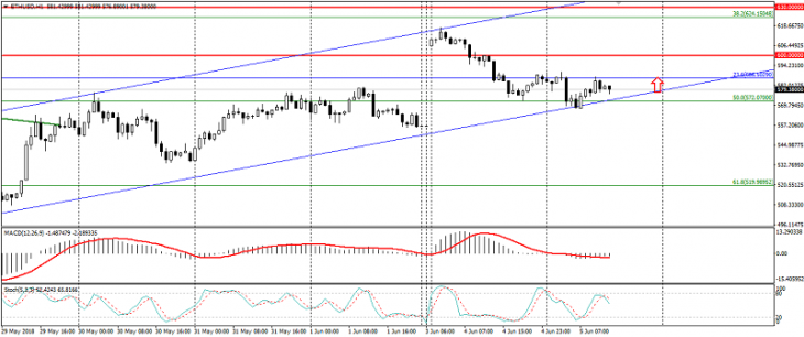 Ethereum ETH/USD, like most crypto-currencies, is traded with a strengthening on an uptrend. At the same time, the pair ETH/USD is traded in an uptrend, limited to 572,000 support, from which the repulsion is possible. The buy entry zone is 590-600.000, fixation of the price above which will open the way to the resistance levels: 615.000 and 630.000. Fixing this pair below the support will cancel the waiting for reinforcement.