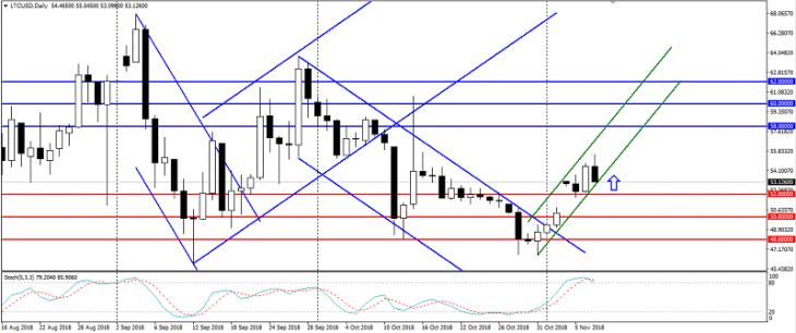 A pair of LTC/USD and the crypto-currency market for the past three months are trapped in downtrends, which eventually formed part of the “double bottom” pattern. The upward trend in October corresponds to the last stage in the formation of a reversal pattern of movement, which is limited to a very narrow trading range.
