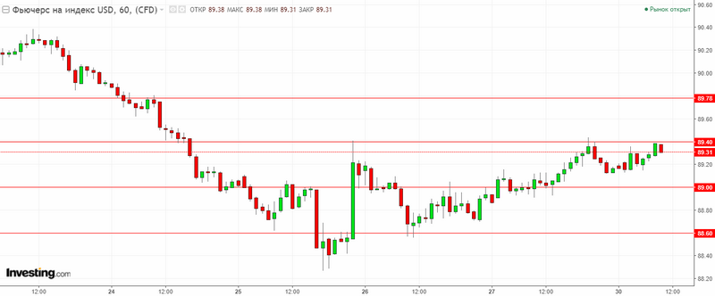 Graph of the US dollar index. The current price is 89.30.