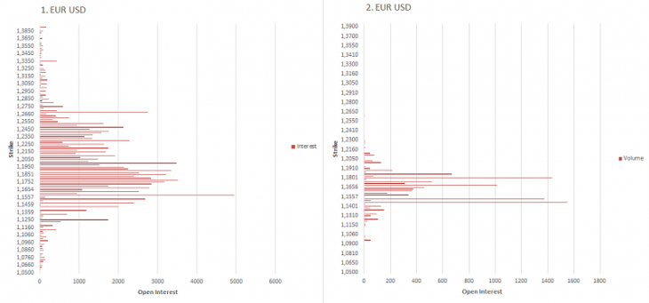 EUR USD The general distribution of interests (1) and volumes (2)