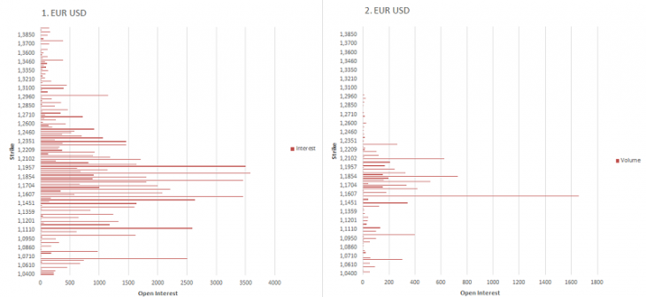 EUR USD The general distribution of interests (1) and volumes (2)