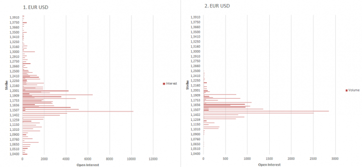 EUR USD The general distribution of interests (1) and volumes (2)