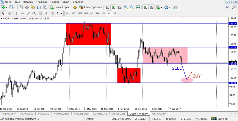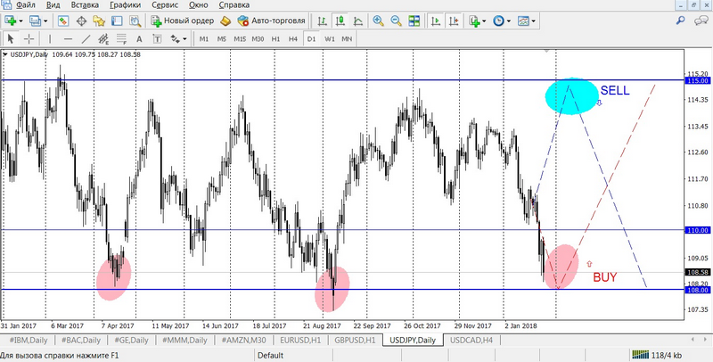 1. The reversal from the annual minimums in 2017, in the 108.00 psychological range. Example of the transaction: